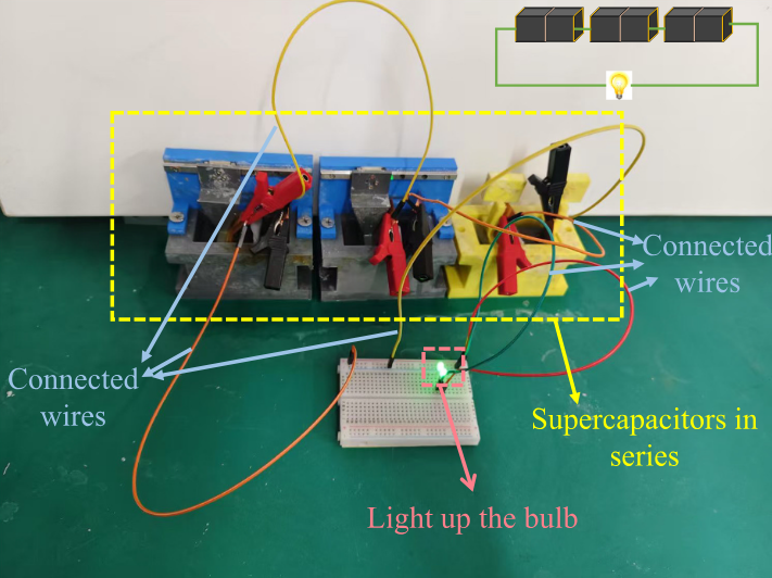 研究结果表明,40%粉煤灰掺量的水泥基结构超级电容器电极综合性能显著优于纯水泥试样,电化学上电荷转移电阻降低、离子传输通道畅通,比电容与库伦效率高,充放电响应迅速且循环稳定性优良;28天抗压力学性能仍维持较高水平。微观结构中疏松多孔与多路径导电网络的协同机制促进了高效离子/电子传输,串联点亮LED灯泡的实验进一步验证了其实际储能供电能力。