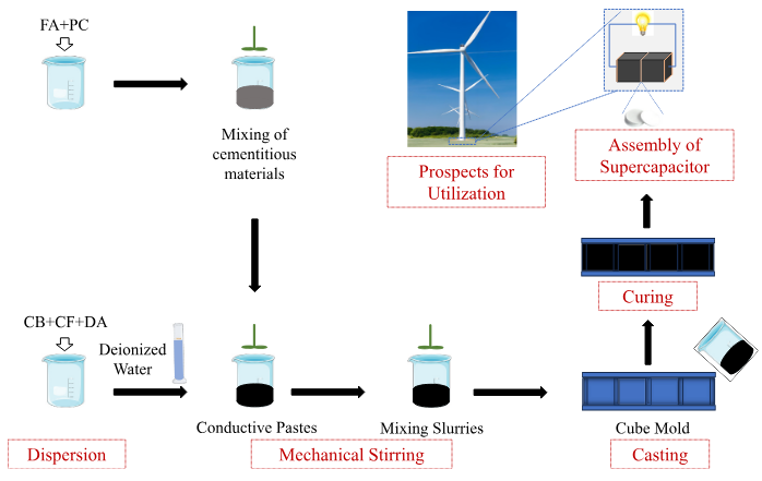 该研究利用工业固废粉煤灰部分替代水泥,在降低原材料成本、实现固废资源化利用的同时,有效解决了传统储能电极与建筑结构力学性能不匹配的核心问题,展现出良好的工程应用前景,为低成本、高性能结构超级电容器的规模化应用、结构—储能一体化绿色建筑、光伏风电混凝土基础储能提供了关键技术支撑。
